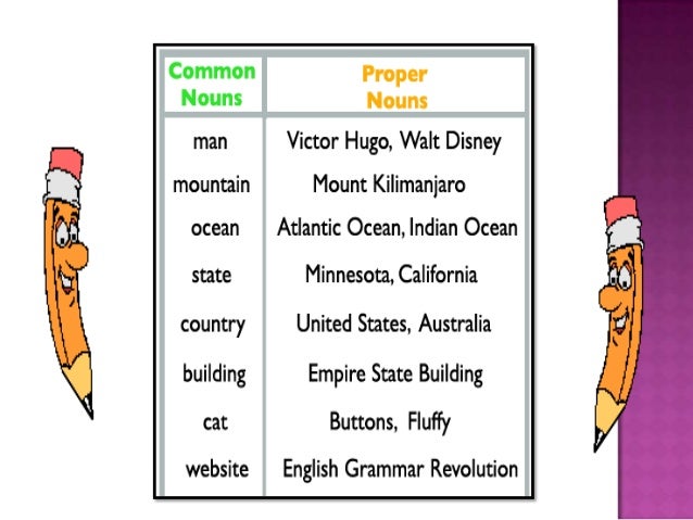 Proper nouns can also occur in secondary applications for example modifying nouns. No the noun noun fruits is a common noun a general word for types or kinds of fruit. The proper nouns are nouns that are.