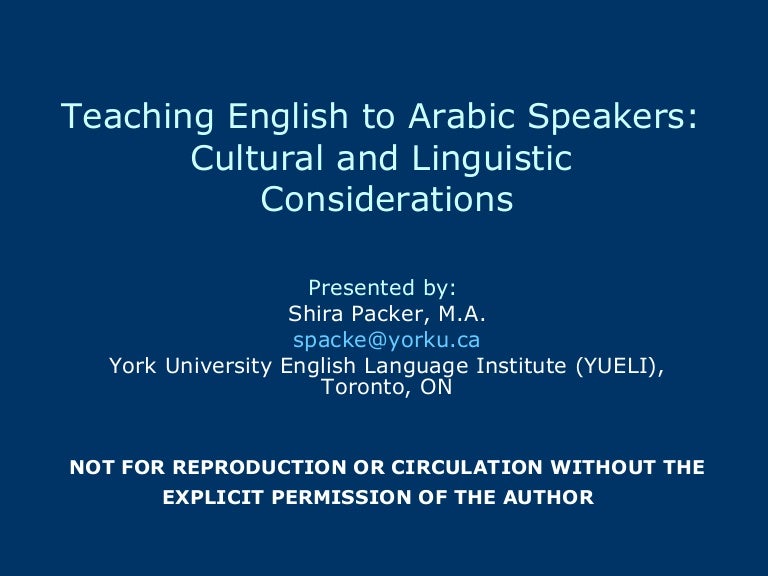 Teaching Arabic Speakers Linguistic And Cultural Considerations Shi
