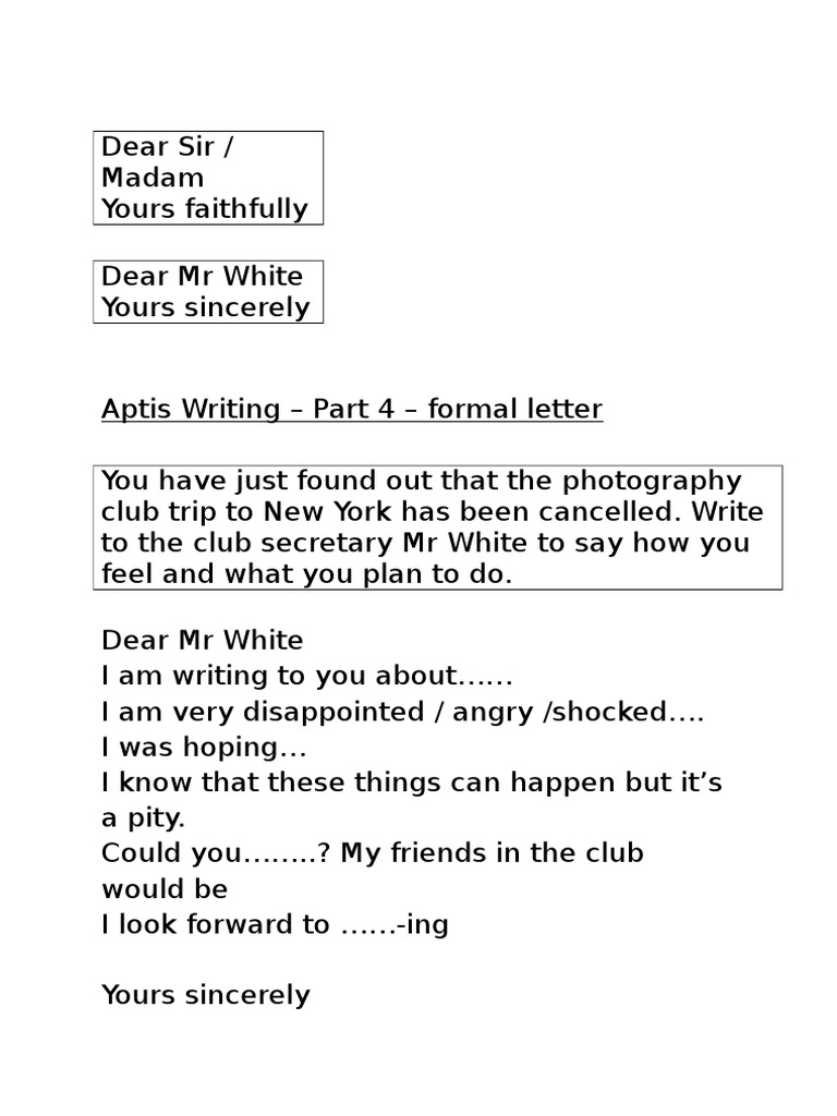 Aptis Writing Part 4 Photographic Club Informal Formal Letters