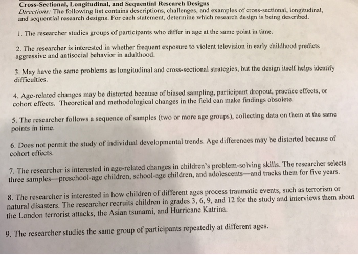 Solved Cross Sectional Longitudinal And Sequential Rese Chegg Com